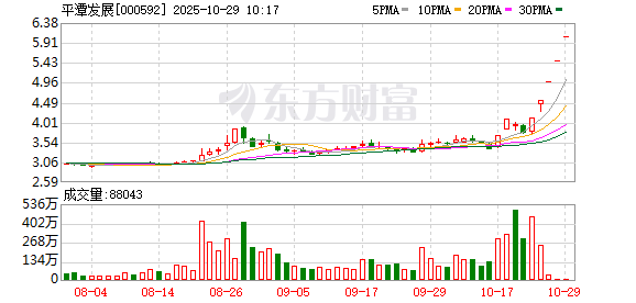 平潭发展再度涨停,9个交易日内录得7个涨停,累计涨幅为79.23%,累计换手率为113.18%。截至9:27,该股今日成交量210.21万股,成交金额1269.67万元,换手率0.11%。最新A股总市值达116.68亿元,A股流通市值115.67亿元。